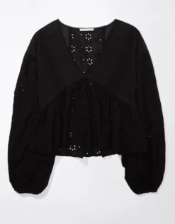 With a flowy hem and adorable babydoll silhouette, this cotton babydoll blouse strikes a balance between crisp shirting & feminine details.