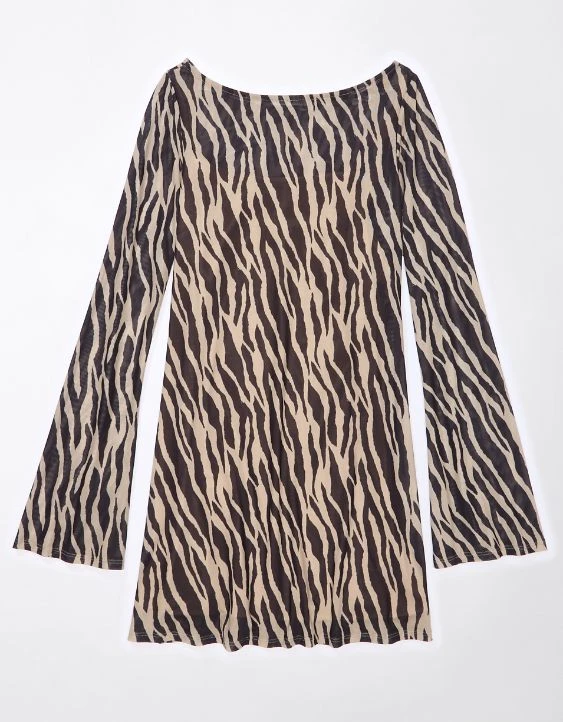 Keep it groovy in this bell-sleeved, boat-necked mini with ’70s flair. Perfect for going out!