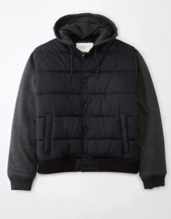 Keep warm in style with this fresh puffer, featuring colorblock details for a sporty vibe.