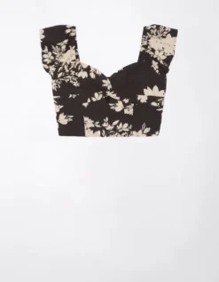 AE Cropped Twist-Front Flutter-Sleeve Top