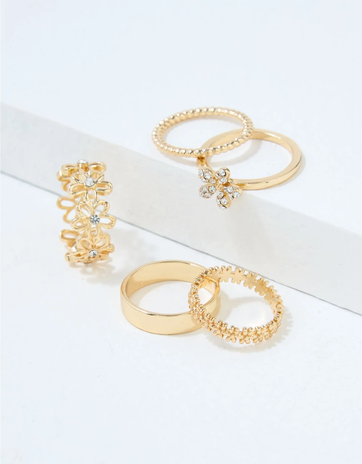 Flower power! Mix, match & stack your fave floral gold-tone rings with a shimmering finish.