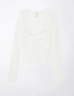 AE Long-Sleeve Cinch-Front Cropped Tee