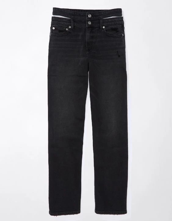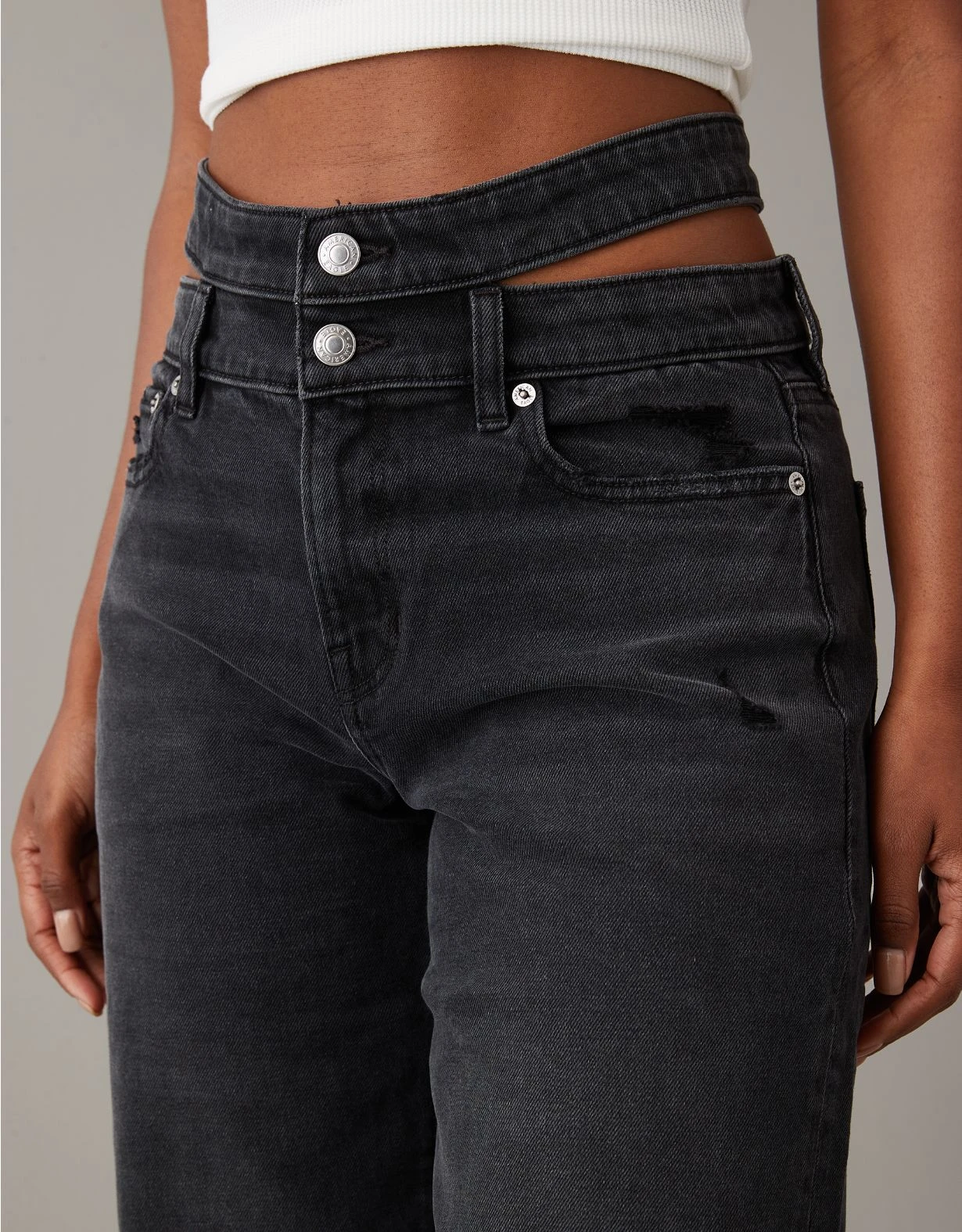 AE Stretch Super High-Waisted Baggy Straight Cut-Out Jean