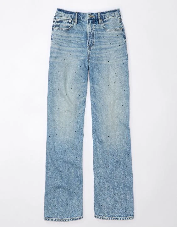 AE Strigid Curvy Super High-Waisted Baggy Straight Embellished Jean
