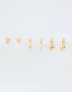 AEO Gold Heart Earrings 6-Pack