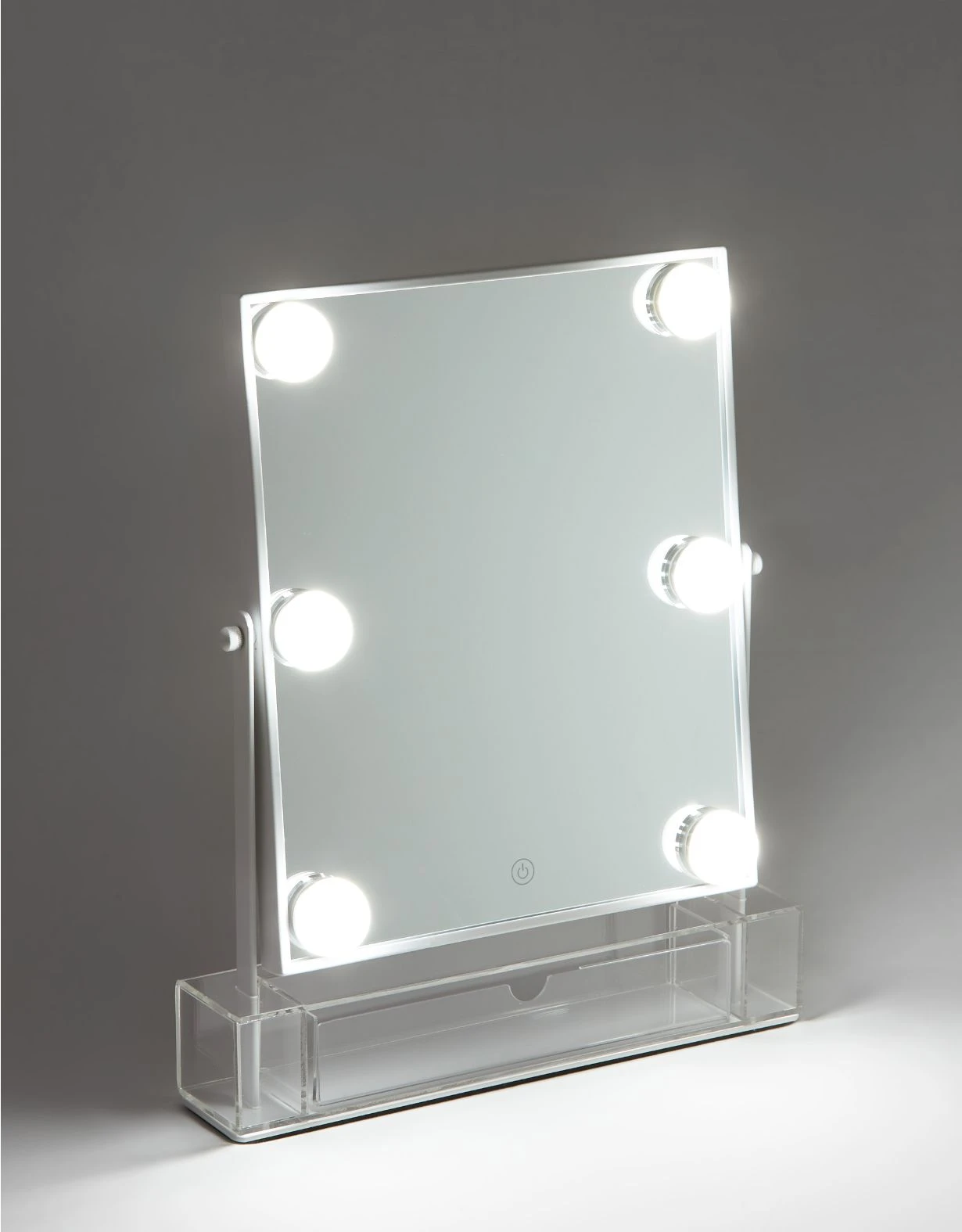 6 bulb Hollywood style table mirror with Storage tray to keep your essentials at your finger tips!