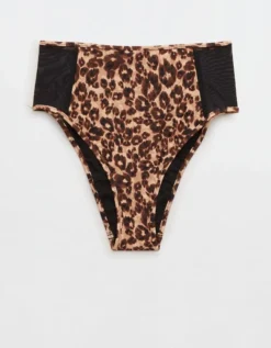 Aerie Leopard Mesh High Cut Cheeky Bikini Bottom