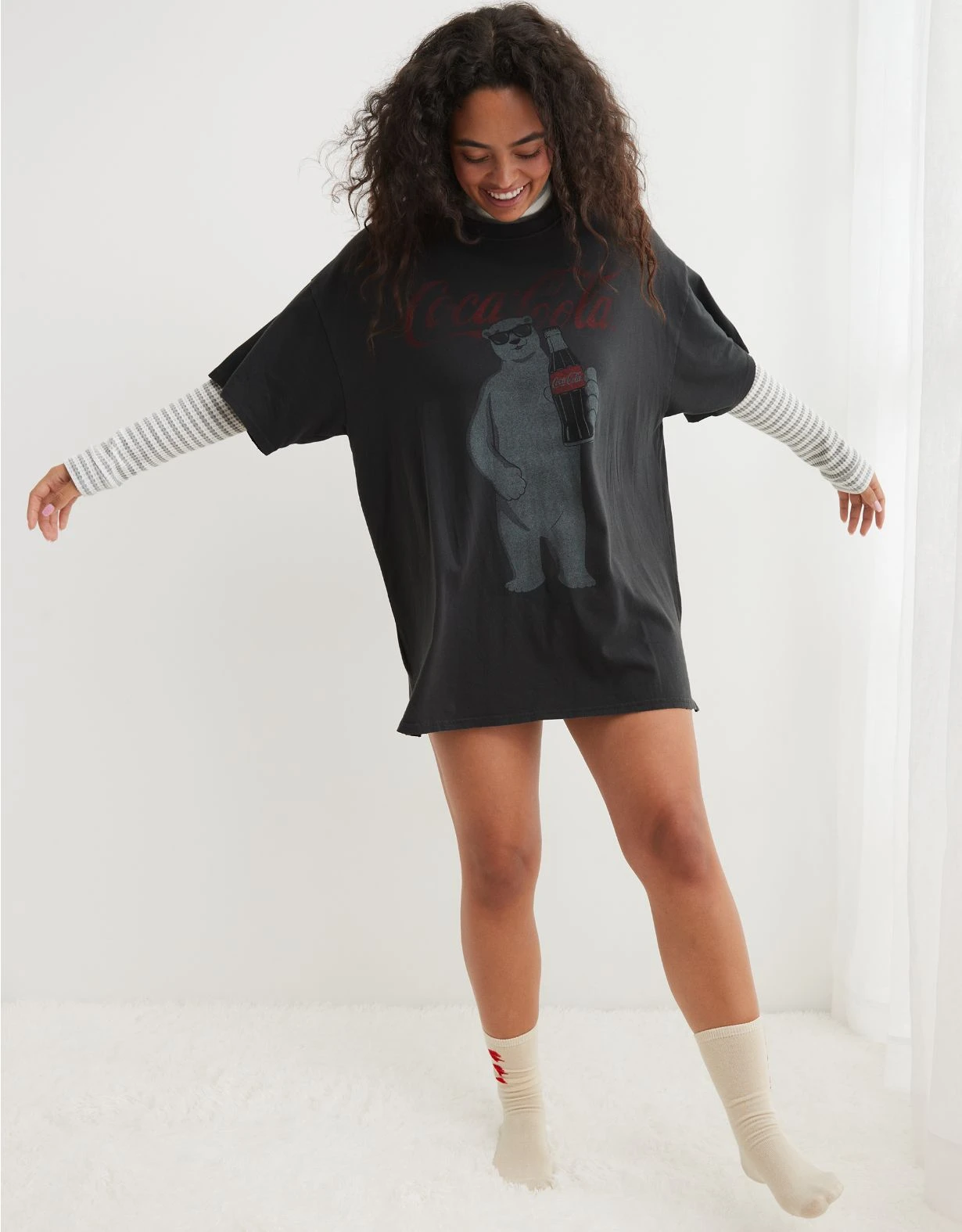 That perfectly worn in oversized sleep tee you lost? Here’s your replacement: a lived in & loved look right from the start, specially made to fit like a nightie. The major plus? Retro graphics.
