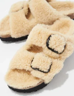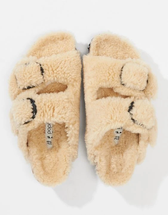 The iconic Arizona two strap sandal, now available in all-over teddy shearling. Extra cozy & extra comfortable with amplified big buckles for a bold style.