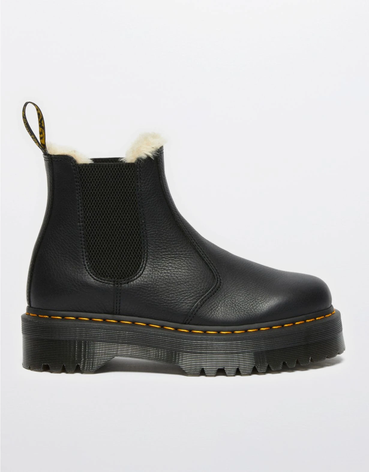 An extra-chunky lug sole and plush faux-fur lining add rugged, weather-ready flair to an iconic Chelsea boot.