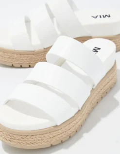 The Kaz features a trio of upper straps crafted from vegan leather, finished with tonal stitching along the edges with an espadrille-like roped bottom.