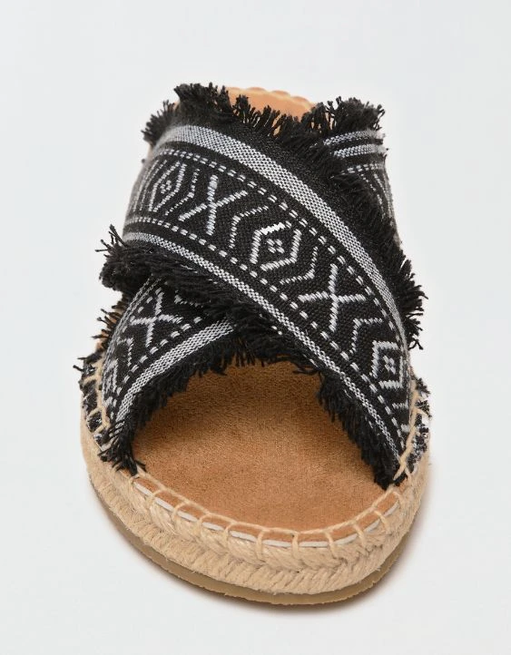 So sleek, so chic, and ready to complete your warm weather wardrobe. Featuring a comfy, frayed fabric crossband design and braided jute detail, these statement espadrille slides are the perfect finishing touch to any sunny day outfit.