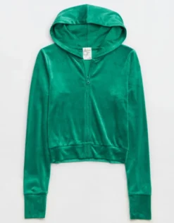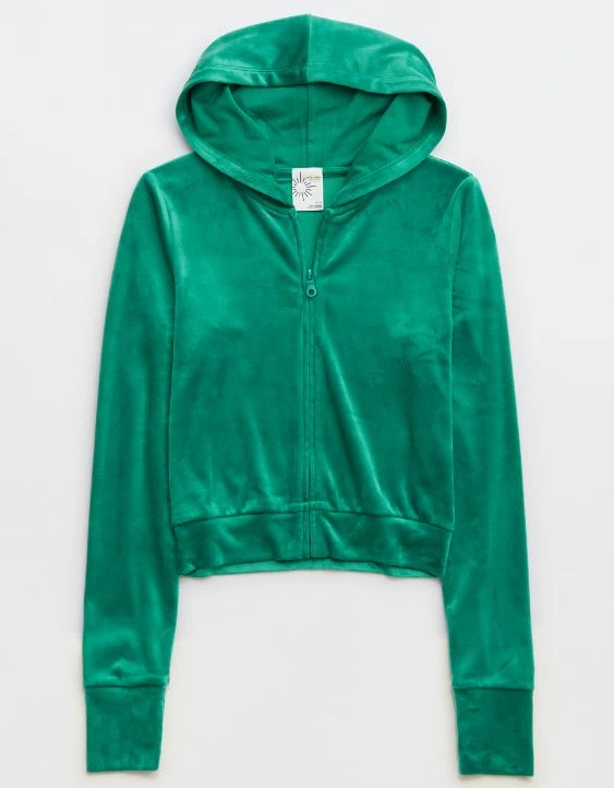 OFFLINE By Aerie Bright Lights Velour Cropped Full Zip Hoodie